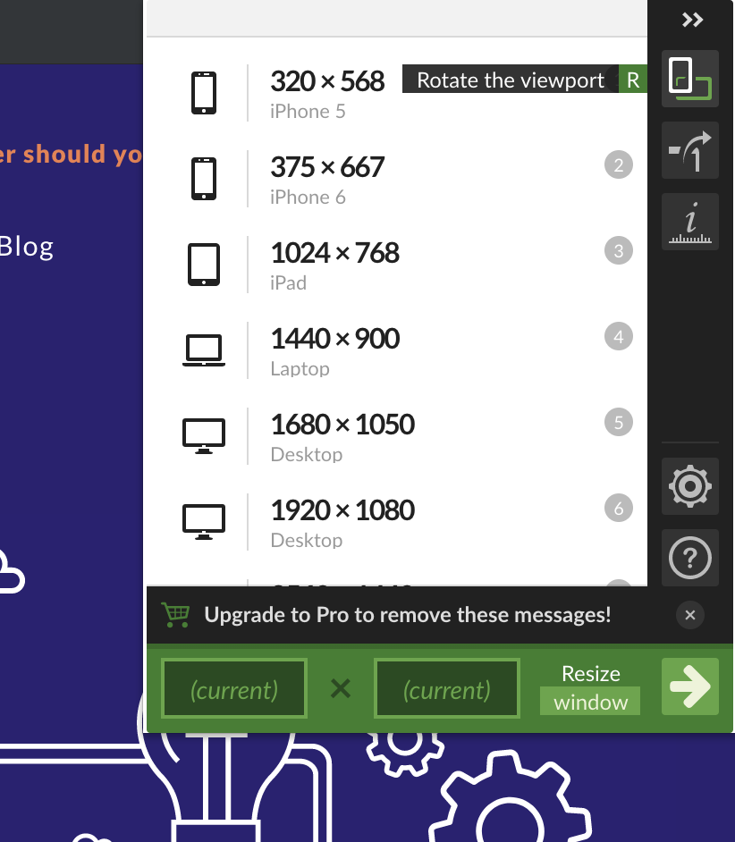 Window Resizer can improve the way you test your website's layout on different devices. You can save presets with dimensions you most often need and simply change your browser's window size. It also allows you to swipe the orientation of the device from horizontal to vertical to emulate the behavior of smartphones.