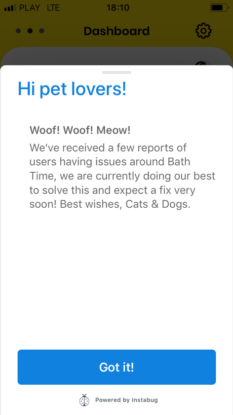 Telling that an error has occurred is not enough. It’s obvious. Assure your users that you’re doing your best to fix it. Cats & Dogs: The Weather App’s creators know how to do this in a pawsome way: