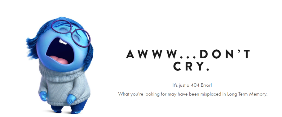 There are a few solutions to save the day. Pixar’s 404 page is one of the finest examples of using microcopy in a funny and creative way. Bringing into play a hero from the Inside out movie (who’s by the way a personification of sadness) is simply a brilliant idea, isn’t it?