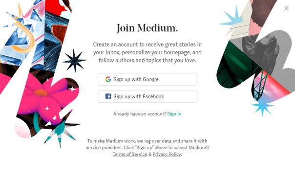 Honestly, registration requires some effort and people usually don’t like it. You have to do all it takes to encourage them to join you. Medium has done a pretty good job in this area. Instead of using a simple title such as Create an account, they say Join Medium. There is a deeper sense behind those words. This is an invitation to the Medium’s community. Then, there we see an explanation on why it’s worth to register: Create an account to receive great stories in your inbox, personalize your homepage, and follow authors and topics that you love.