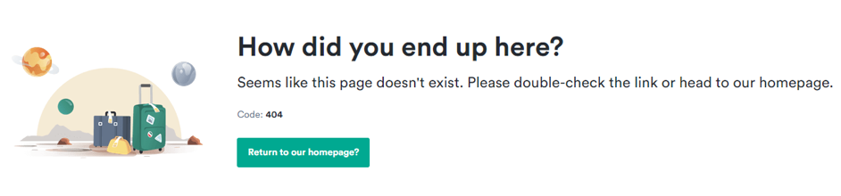 When you’re lost in some strange surroundings, there is no better idea than returning to a safe and well-known place such as a home. Give your users an easy way out of trouble by providing them with a helpful button that can quickly take them back to the home page. That’s what Kiwi.com does when its users somehow end up in… space, instead of the earthly direction they were looking for.