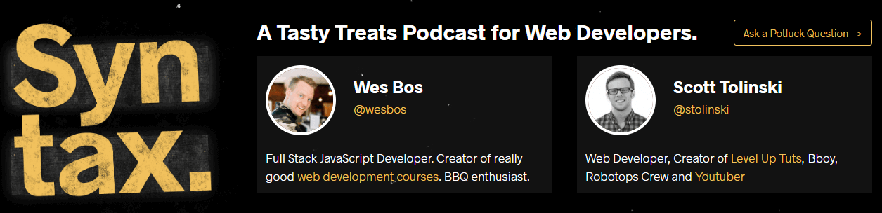 If you’re looking for a podcast covering such topics as JavaScript frameworks, CSS magic and the latest advancements in web development, look no further. Wes Bos and Scott Tolinski have been serving us Tasty Web Development Treats since 2017. By sharing their own experience and work-related tips, as well as inviting excellent guests, they created a real gem for web developers!
